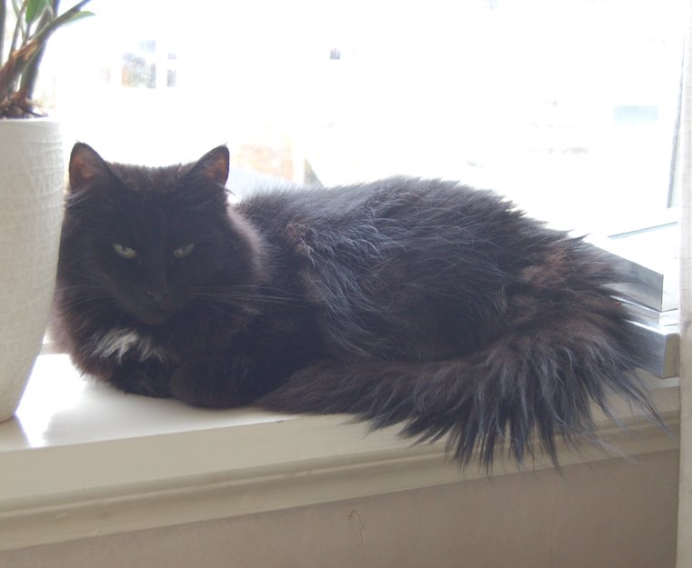 Meisie er 5 1/2 år gammel og som regel litt skeptisk for fremmede mennesker. Hun reagerer på navnet sitt og er som regel inne, noe hun liker aller best. Hun er sort/brun på farge med lang pels og lodden hale. På brystet har hun en hvit flekk. Hun er ikke så stor. Vi håper at hvis noen ser henne, så tar de kontakt! For vi savner henne forferdelig!
