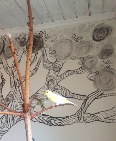Funnet ute på gata, på bakken, lite flyvedyktig da, men nå frisk og rask.