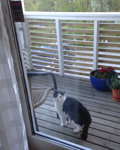 Katten bor i nabolaget. Fikk hjelp av Mya's omplassering for pusehjerter til å finne at katten faktisk både var chippet og sterilisert. Katten er gjenforent med eier og vi er glad for å ikke bekymre oss over at den har et hjem.