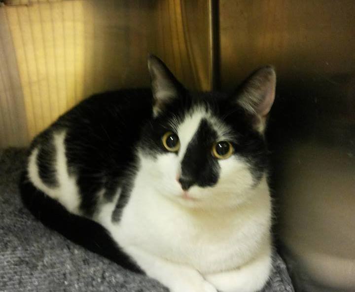 Svart og hvit korthåret, sort snute med spesiell svart flekk på venstre side av snuten. Katten er kastrert og har blitt ID-merket med chip i 2009, men chippen er desverre ikke registrert.