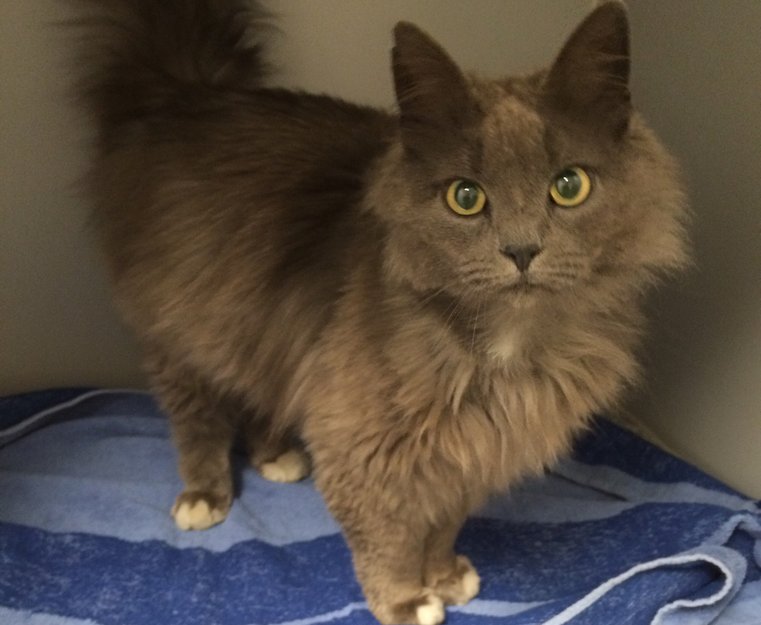Grå med vite tassar hannkatt ble funnet i Ullensaker