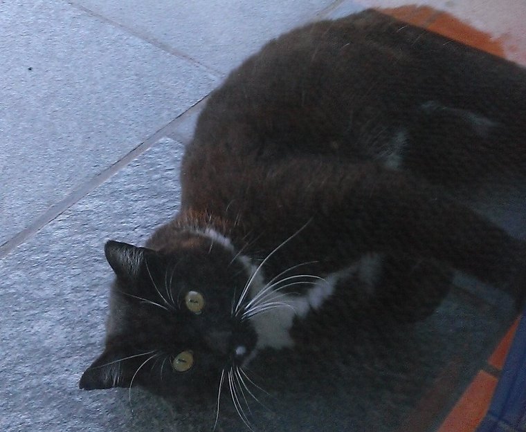 Han vil ikke flytte seg fra trappa vår på IPC Foma, er veldig kosete og kontakt søkende.