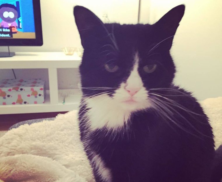 Svært sky og lettskremt hunkatt. Hun er svart i pelsen med hvite poter, krage, hals og munn. Snuten er rosa. Hun er veldig "sløv" i blikket og kan se sur eller morsk ut. Er veldig redd alt med brå bevegelser og høye lyder. Dette er en katt som ikke har det godt ute! Jeg ønsker så inderlig å finne henne igjen. Hun er en fantastisk pus som dessverre har hatt det tøft i livet.