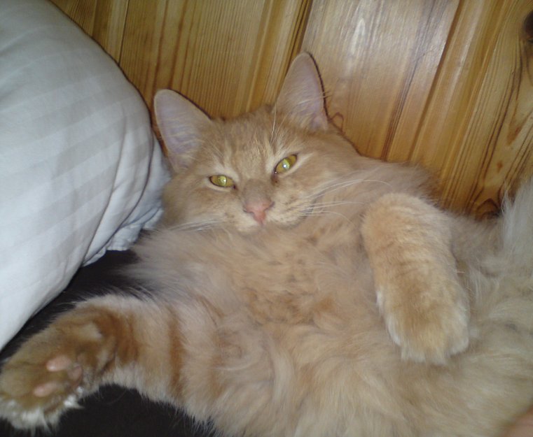 Armani kom hjem kl.22.30. Han luktet ikke akkurat skog og mark. Ikke var han særlig sulten heller. Mulig han har funnet seg en fugl eller to på sin ferd. Håper at folk, som kanskje ønsker seg dyr selv, ikke driver å tar andres dyr inn til seg selv. Jeg velger å tro at han har vært innesperret i en garasje eller bod. Han har nå har funnet seg en 180 seng og tatt kvelden .