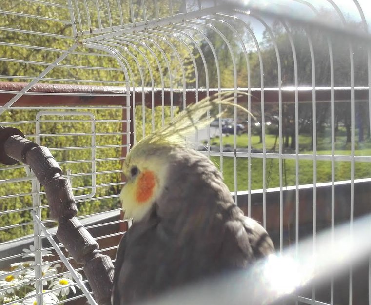 Røde roser i kinna, han lager mye rare lyder, kan lokkes ved å *plystre på fine damer*-lyd. Pleier å herme da. Blåser mye, så aner ikke hvilken retning han fløy. Gullars er snart 14 år og jeg har hatt han siden han var baby. Er så utrolig glad i han og er helt knust. Han er menneskekjær, og setter seg gjerne på skulder.