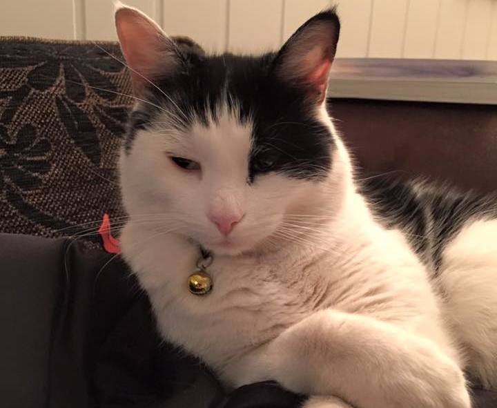 Han er en korthåret svart og hvit, lang, slank, ung, kastrert hannkatt. Veldig kosete, og spesielt glad i barn.