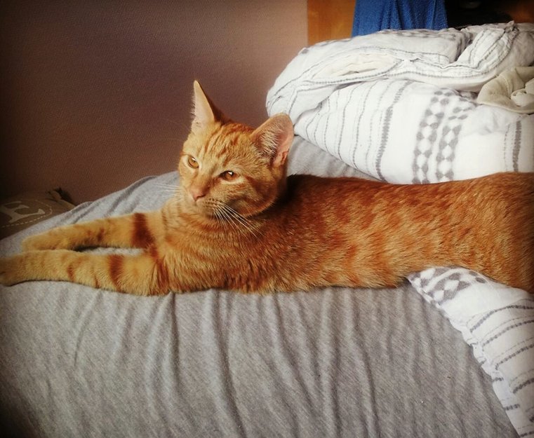 Richard er ein slank vakker kastrert gut med øremerke. Hjelp å sjekk i boder å skur, for han sover over alt.