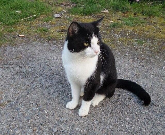 Katten har vært rundt huset en periode. Stått på terrassen og ønsket oppmerksomhet. Veldig kosete og snill.