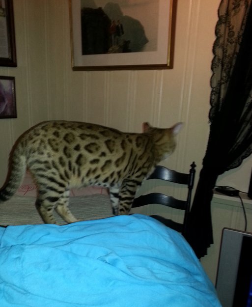 Brun med sorte flekker som en Leopard. Han liker å bli kost på magen. Lyder navnet "Frankie Boy"