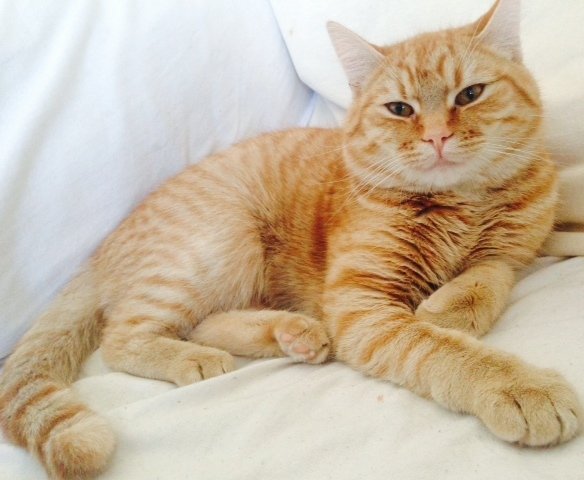 Rød/orange og hvit, lang og slank, knekt haletipp