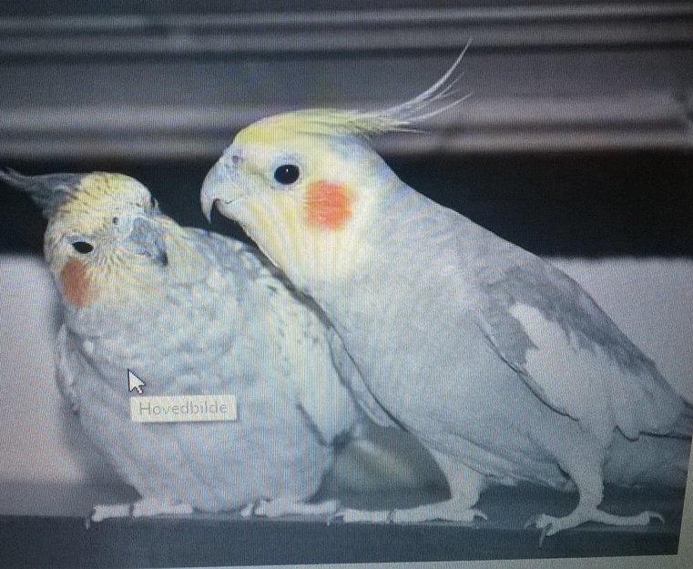 bur er falt : 2 Nymfeparakitter som var par 1 gul/grå m. strippe og andre er grå/hvit .