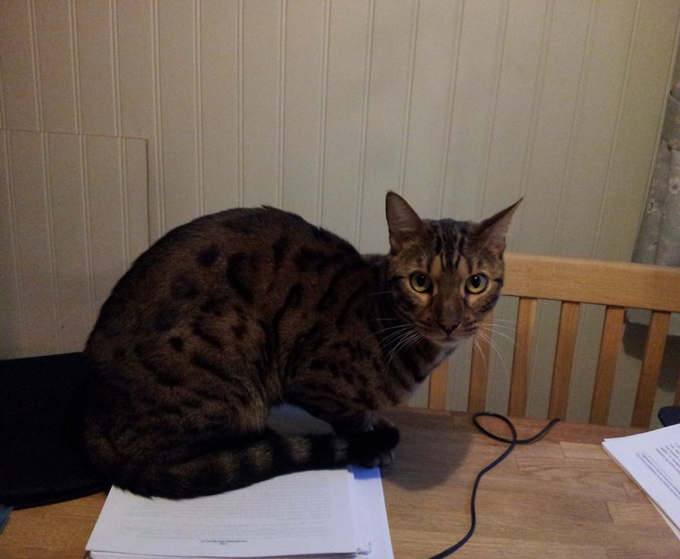 Pus er brunnspottet bengal. Veldig nysgjerrig, liker å følge med på alt som skjer rundt. Modig katt.