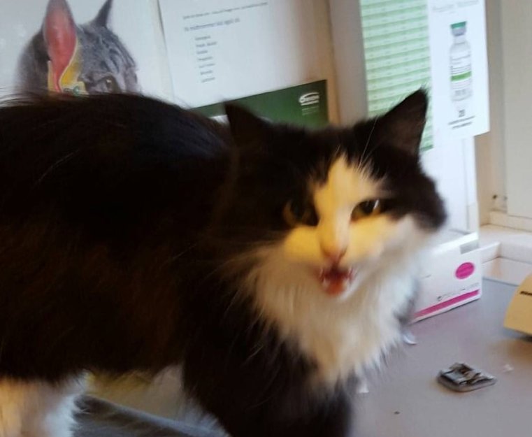 Katten har hatt tilhold på en adresse i Stovnerbakken i flere uker. Hun har fått mat og man har antatt at hun er hjemløs. Hun ble bragt til vår veterinær tirsdag 23.6 for å sjekke om hun var id-merket, noe hun ikke er.