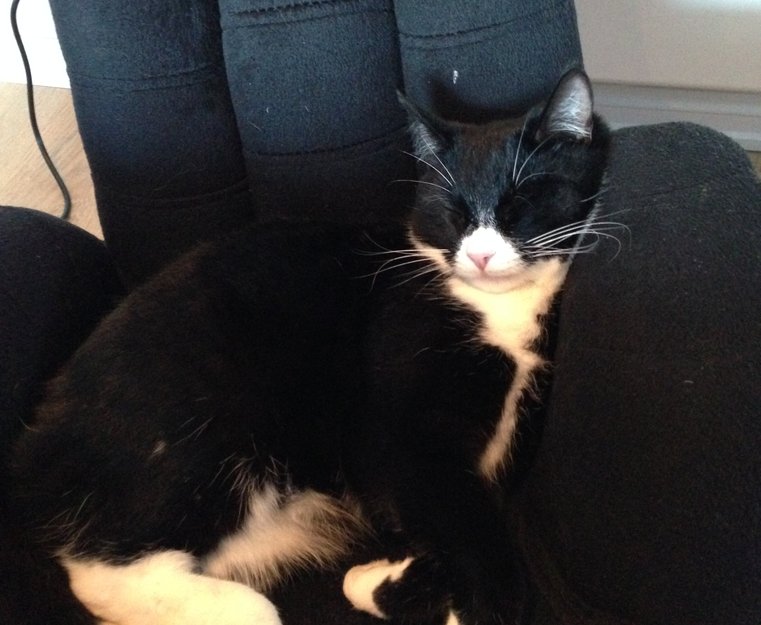 ca kl 05:20 stod vår kjære Leo utenfor døra akkurat som den pleier...like blid...veldig sulten og noen "kg" lettere. Først mat så mye kos...La seg oppi senga til 6 åringen som jublet vilt selv om det var tidlig på morran.