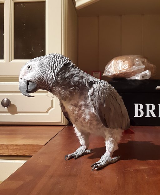 Anton skulle inn fra uteburet, i det vi skulle gå inn fløy han avgårde. Han har aldri stukket før og er generelt en skeptisk fugl. Han er en grå jaco på snart 16 år