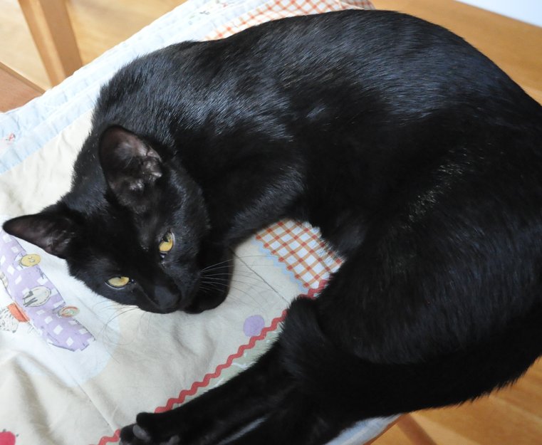 Han er en liten katt har også tatto i øret og en svart halsbånd med bjelle og stjerne på.