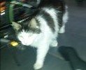 Det er en svart og hvit hannkatt. Han er redd i ukjent miljø og kosete i kjent miljø. Mjauer også mye! Har mye pels.