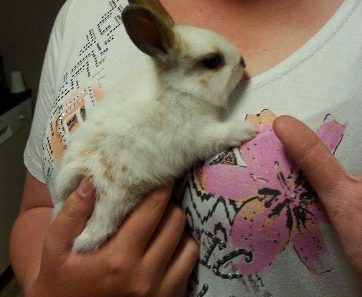 En liten kanin unge på kanskje 5-6 uker.Dyrebeskyttelsen Tønsberg Horten har den nå. Ta kontakt hvis du savner kaninen din.
