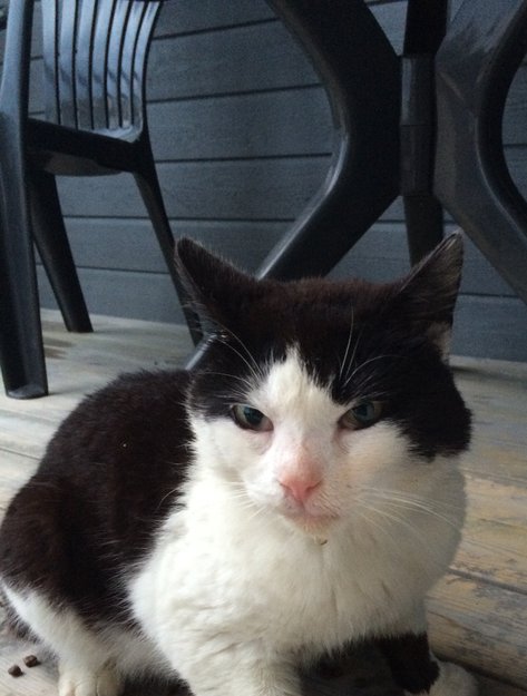 Svart og hvit katt ble funnet i Fjell