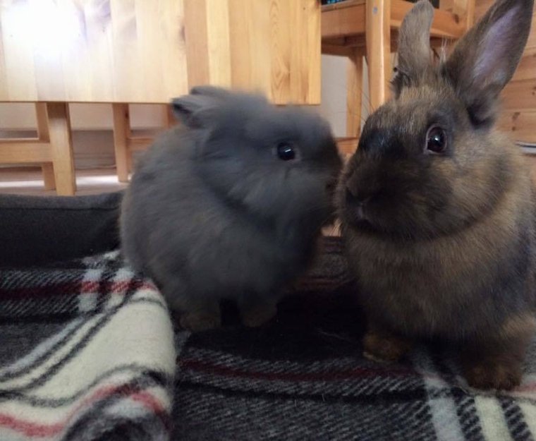 to kaniner har stukket av, den ene er grå og den andre brun.