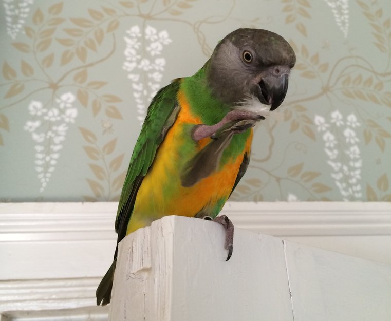 Senegalpapegøya mi Mango tok seg en liten tur på egenhånd ut verandadøra i går kveld (7.juli), i Fougstadgata på St.Hanshaugen, og har ikke funnet veien hjem. Mango er en veldig pratsom liten fulg. Hun snakker ikke ordentlig, men er god på ulike lyder og høye skrik. Hun er vant med både eldre og yngere mennesker, men nå er hun nok engstelig, kald og redd. Hun er litt skeptisk til nye omgivelser, og er ikke vant til å være ute i byen. Mango har aldri flydd sin vei før, og har tidligere vært på sommerturer utendørs med meg, uten å ha fløyet avgårde på egenhånd. En skremt, liten fugl alene ute i regnet vil ikke klare seg så godt, og nå er hun sterkt savnet. Om noen skulle ta henne til seg inn i varmen, vil det gjøre meg og fuglen veldig glade! Og om det blir gitt beskjed til meg så hun kan komme hjem igjen :)