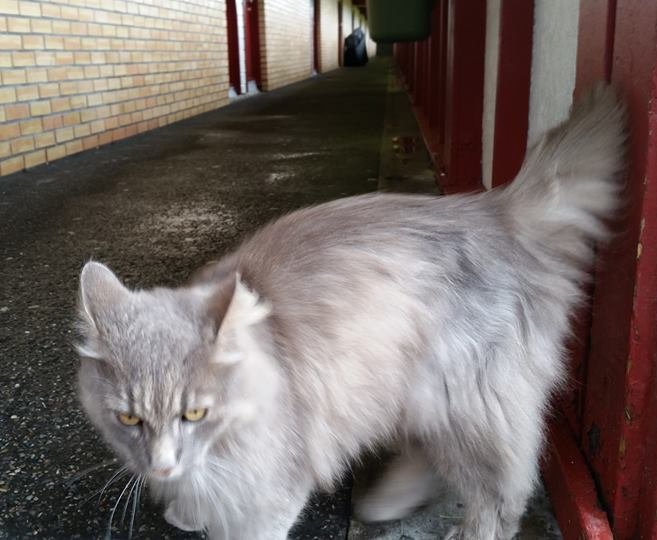 Jeg bor på dønskitoppen i Bærum. Idag fant jeg en katt utafor blokken som jeg ikke har sett før. Denne katten er tydelig underernært og forslått mange steder. Katten ser ut som en blå Somali katt. Jeg tror det er en kastrert han katt.