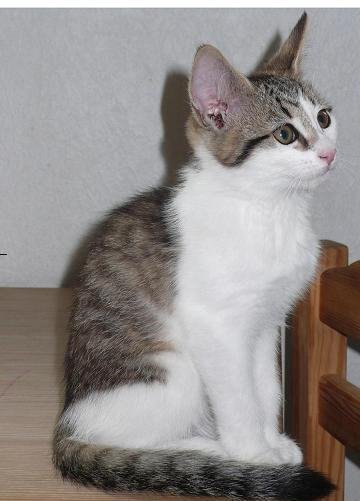 Findus er hvit under med tigrete mønster på ryggen. Hun har pene kajalstiper ved øynene og er glad i mennesker. Hun er nylig kastrert og hadde fortsatt sting på magen da hun ble borte