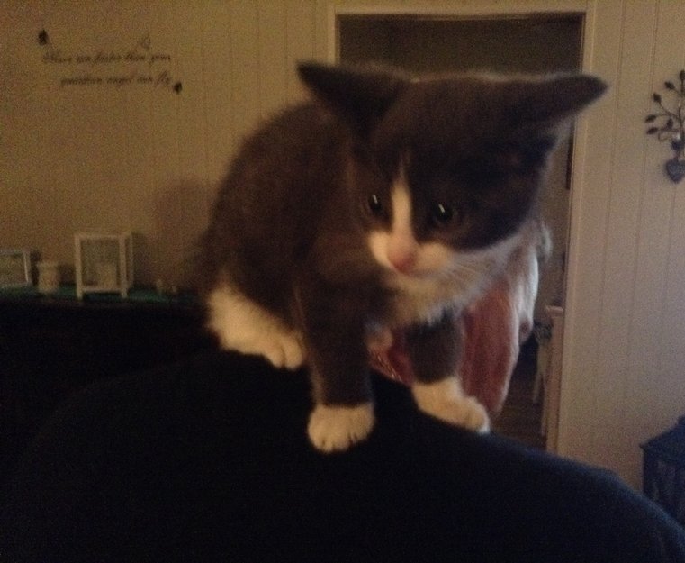 grå og hvit kattunge Ca 10-14 uker gammel