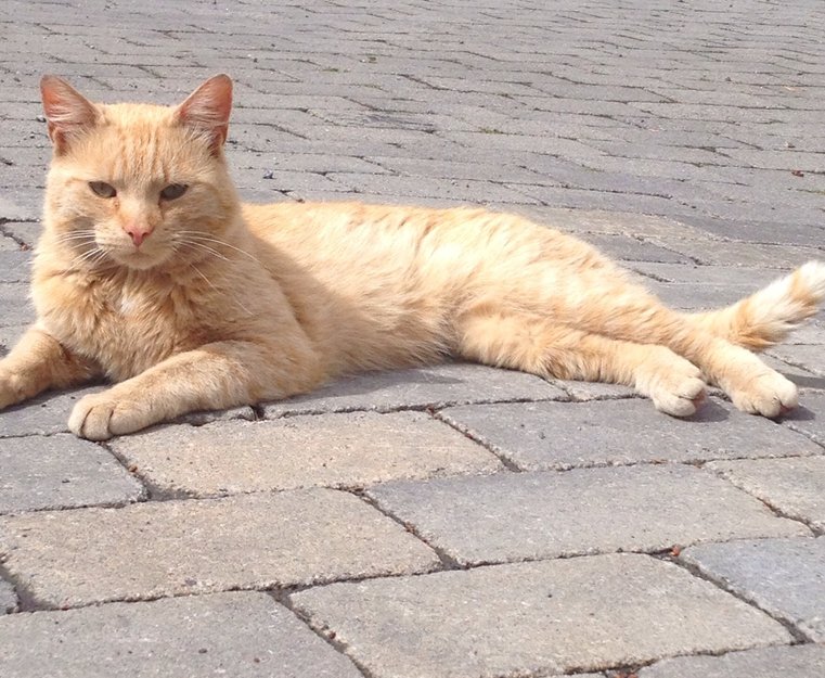 Katten sover i hagen min og er sulten og kontaktsøkende.