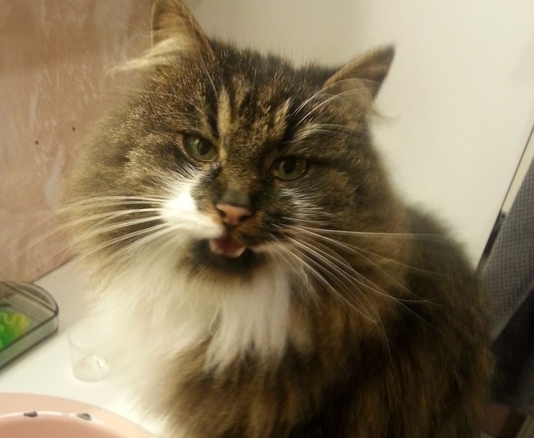 Hun kan være litt skvetten, da hun har opplevd å bli skremt kraftig av en annen katt vi har hatt.