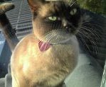Liten Burmeser jente/dame, brun med sort maske. Hadde reflekshalsbånd med strikk og navnebrikke med navn og telefon nummer. Veldig glad i varme og kos, kan bli veldig sint om hun blir holdt fast/og kost med. Hennes to kattesøstre savner henne veldig og går rundt og "leter", vi er forferdelig bekymret ........