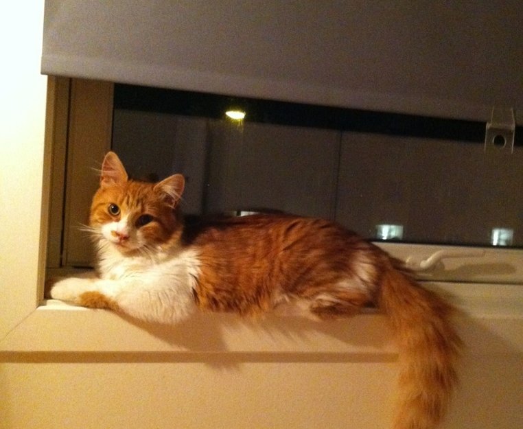 Pus kom hjem i kveld veldig forkommet og har problemer å gå. Godt han kom seg hjem. Dyrlegen i morgen tidlig.