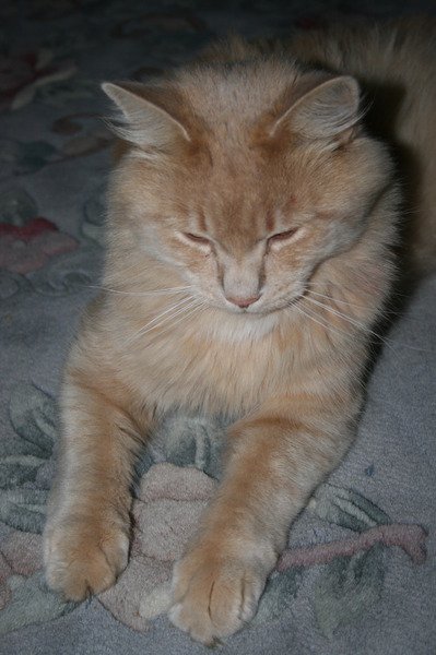 Etter etterlysning i Svelvikposten,ble Simen hentet på en gård et stykke unna....Her har han visst vært før. Sulten og tørst, men nå er han hjemme igjen hos matmor etter 5 lange uker på tur...;)
