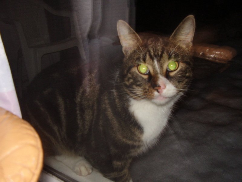 den rusla rundt i tunet her i høst, ville inn. sloss med våre katter. sulten. maler og koser seg når den får mat og kos.