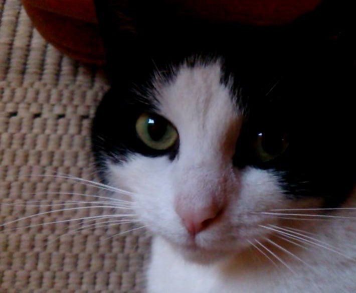 Hun er ganske lita, mest hvit og litt svart. Svart hale, og svarte tegninger. Veldig kontaktsøkende og snill. Veldig lite hode.
