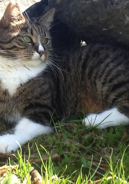 Sarah er svært pratsom, og hun svarer/kommer når du roper, hun er svært tillitsfull og kosete. Også mot fremmede. Hun er aldri ute lenge av gangen, og sitter som oftest bare rett utenfor døren. Jeg tror derfor hun befinner seg i et område et godt stykke herfra, som gjør at hun ikke finner veien hjem. Håper folk vil sjekke boder, kjellere og garasjer. Hun har hvite labber, er grå/brun og har svart tydelig tigerstripet mønster på ryggen og halen. Hun har en hvit trekant på neseryggen, og en tydelig rift i øret sitt. Håper folk kan være så snill å kontakte meg hvis de mener å ha sett pusen min. Jeg håper fremdeles at Sarah kommer hjem snart, hun er sårt savnet!