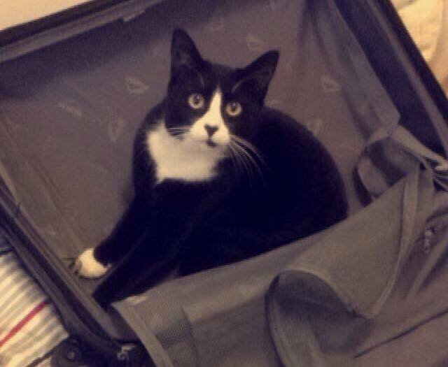 Han har svart och vit päls, svart nos och underläpp. En svart hale och vita poter. Han har desvärre inget halsband, men är chippad. Han jamar ganska lågt men är inte alls aggressiv, det är inga problem att ta under magen eller på poterna. Han är väldigt social och har vart utekatt i 4 månader, han är 1 år.