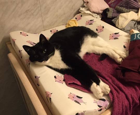 Nonstop er svart over, og hvit under. Hele ansiktet hennes er også svart. Om du ser henne, vær så snill og ring meg.