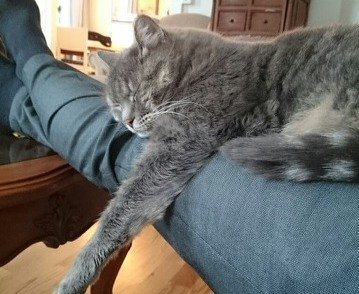 Pia er en 10 år gammel hunnkatt som er øremerket i begge ørene. Hun har litt hengebuk.