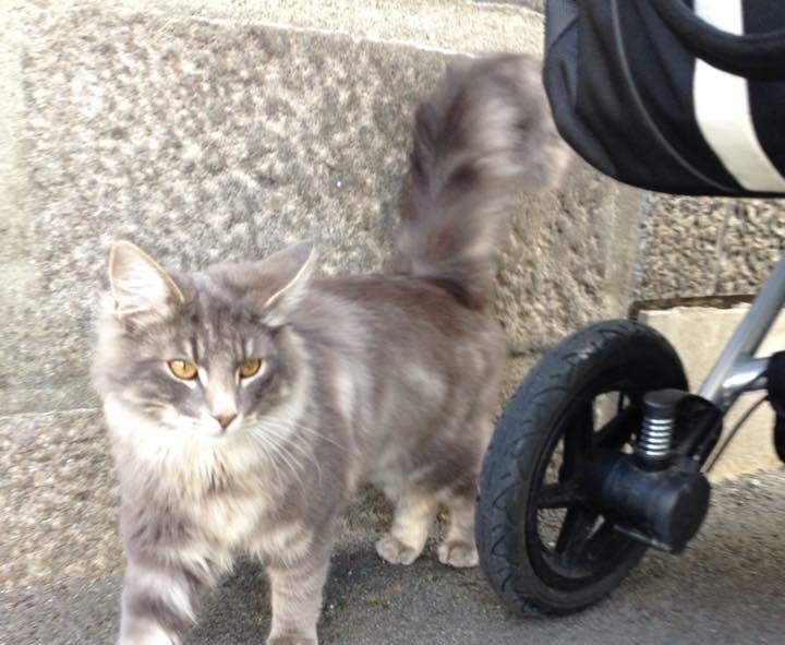 halen hans er unik, det er en Main Coon hale, han er blanding av Main Coon og skogkatt