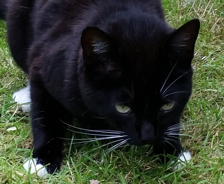 Katten søkte oss på hytta, Sjølvik, Hommersåk. Den var veldig sulten og skeptisk. Virker tam og er utrolig kosete. Tror det er en hunnkatt, men er ikke sikker.