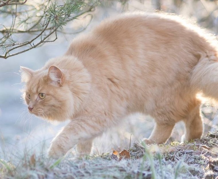Leo er en litt stor katt på 3 år, pelsen går fra helt lys sandfarget til orange visse steder. I ansiktet har han svake striper av orange, og på toppen av ryggen er pelsen litt mørkere. Han er glad i mat, men er nervøs rundt nye mennesker og dyr. Han er ID-merket.
