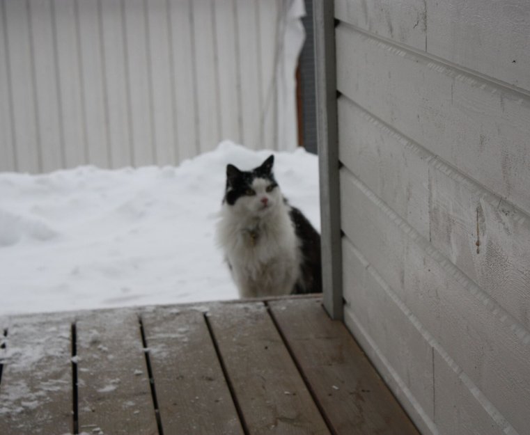 Naboen hadde tatt han med inn og var ikke tung å be om å gå inn i buret når vi kom.