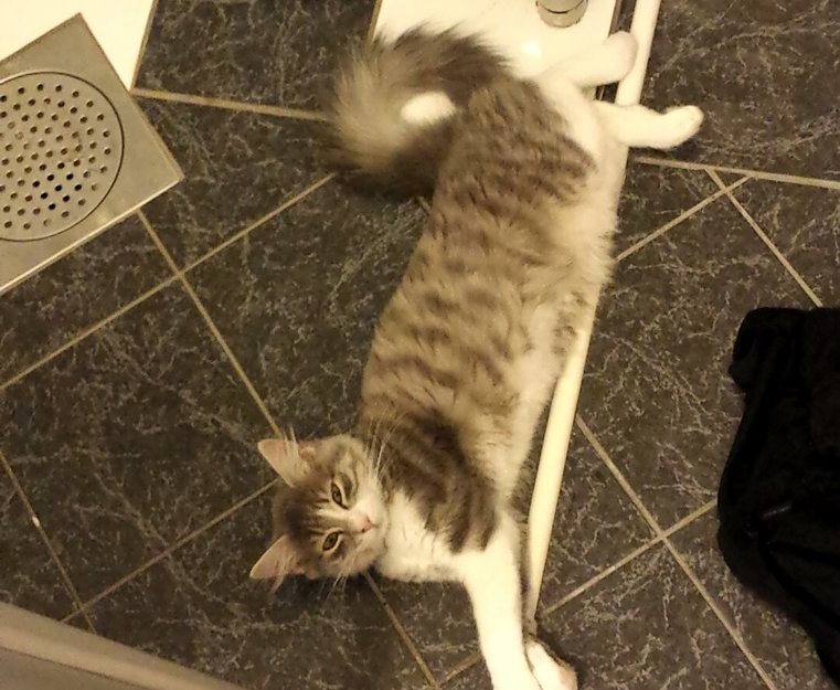 Hun hadde på seg ett halsbånd med et blått kattehode som er blitt tygget på og bjelle.