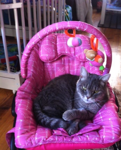 Ansiktstrekkebe hans ser litt sinte ut, men han er egentlig verdens snilleste!:) han er en mellomstor katt, veldig bedagelig:)
