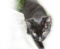 Sort, slank , voksen, kastrert, chippet og øremerket hannkatt.