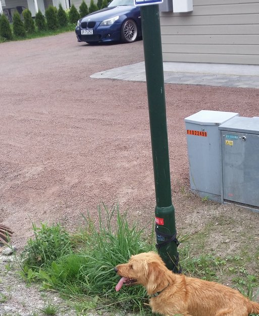 Hunden ble gjenkjent av noen naboer, slik at eieren ble kontaktet og hunden ble hentet.