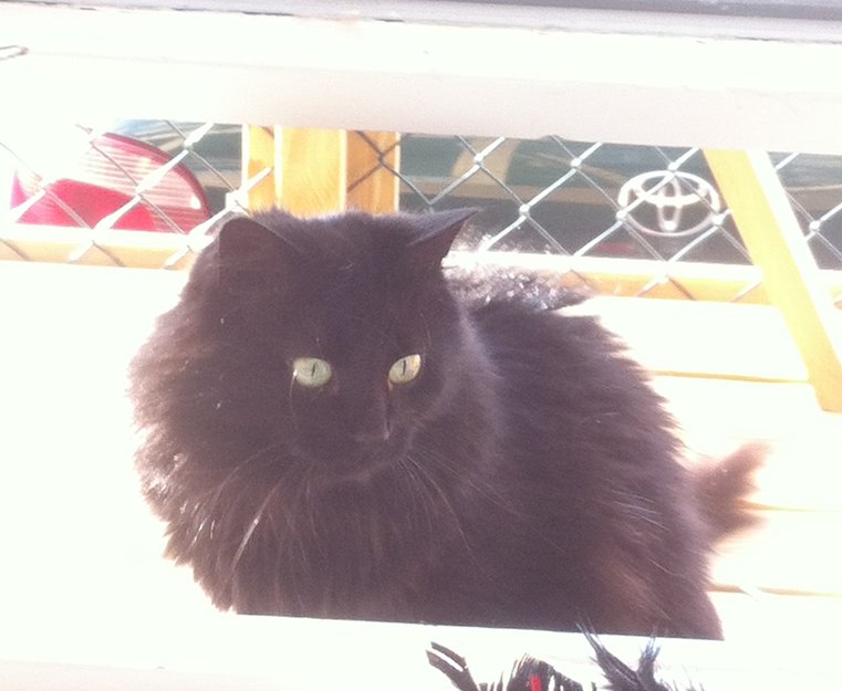 GULE OG SVÆRT RUNDE ØYNE. HUN HAR VELDIG LANG OG LODDEN HALE SOM HUN OFTE HAR RETT OPP.HUN LIKER Å BLI KLAPPET, MEN IKKE Å BLI HOLDT. HUN ER LITT FORSIKTIG AV SEG.