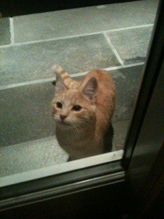 Katten oppsøkte oss og vil bare inn i huset og ha kos. Vi har katt fra før og det er en utfordring.