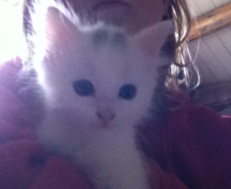 12 uker gammel kattunge, hvit med to sorte striper på hodet, mistet på Blindern i Oslo.
